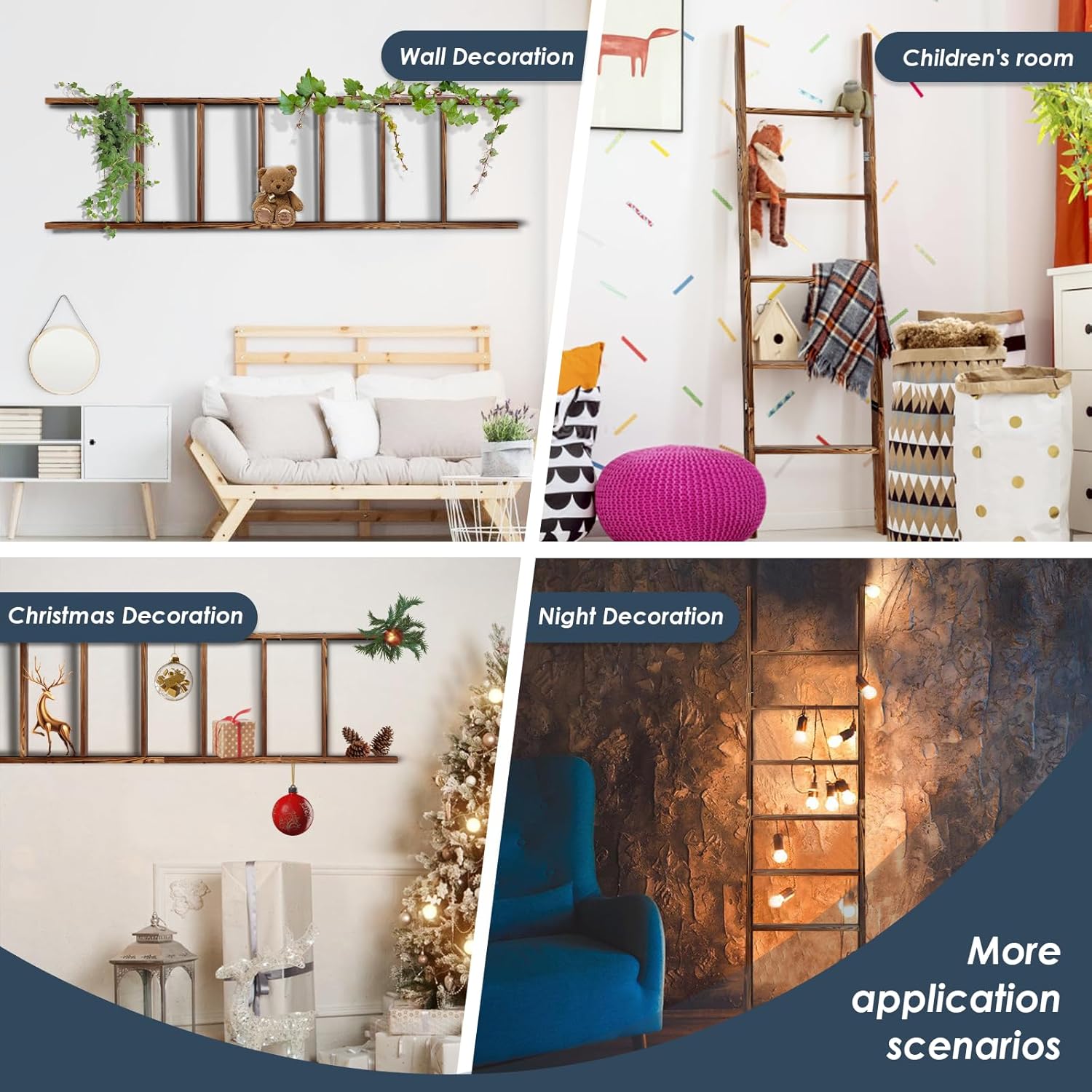 6-Tier Blanket Ladder Wooden, 5.7FT(66.5'') Blanket Quilt Towel Holder Rack Decorative Ladder, Easy Assembly, Rustic Farmhouse Ladder Shelf for The Living Room Bedroom Bathroom Home Decor, Brown