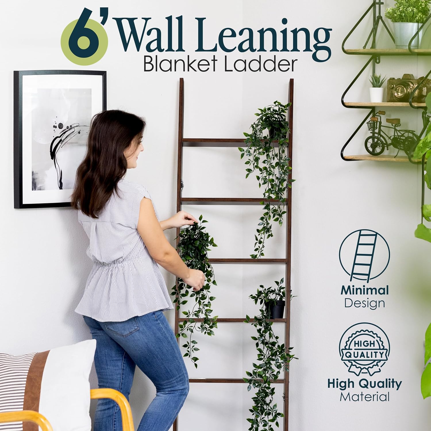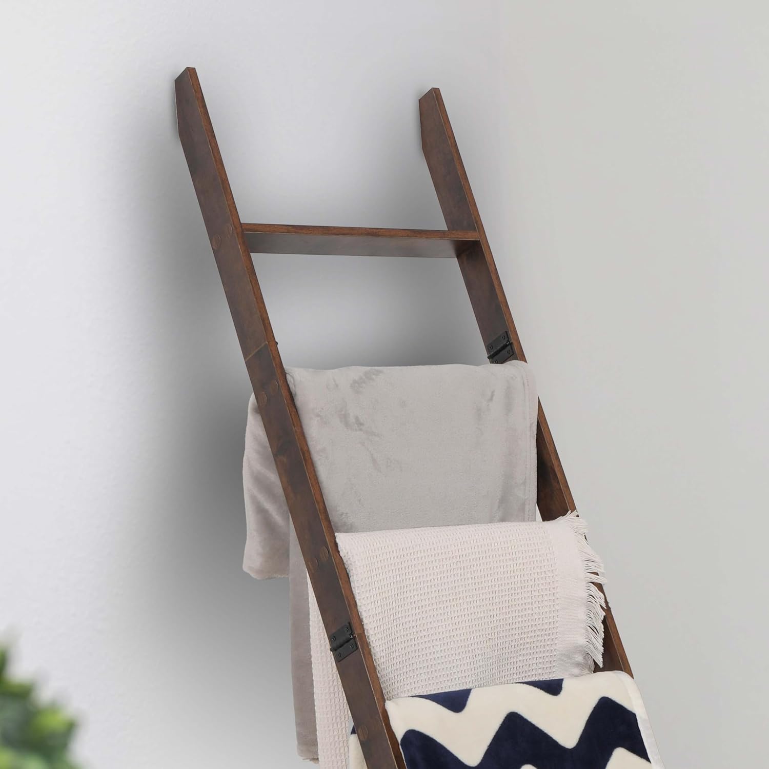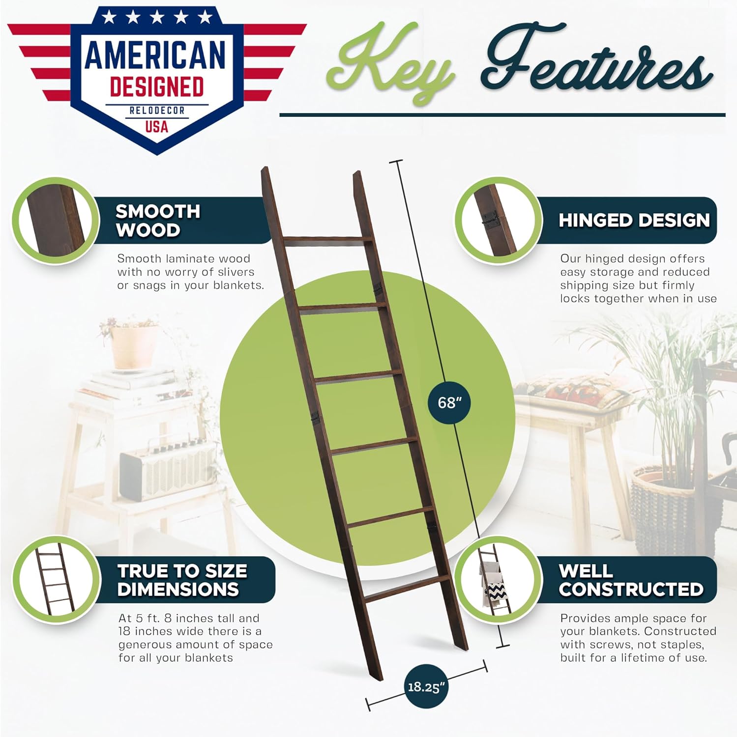 Blanket Ladder for Living Room and Bedroom, 5ft 8 inch, 6-Tier Wall Leaning Laminate Snag Free Construction (Rustic Hickory) Rustic Decorative Farmhouse Blanket Storage, Quilt Rack, Ladder Shelf