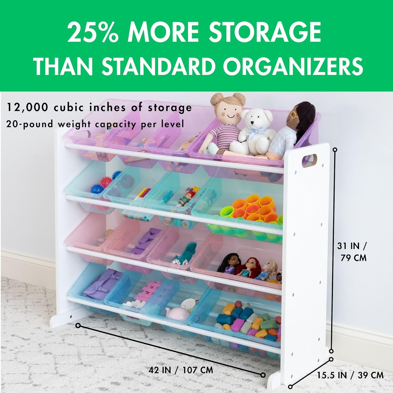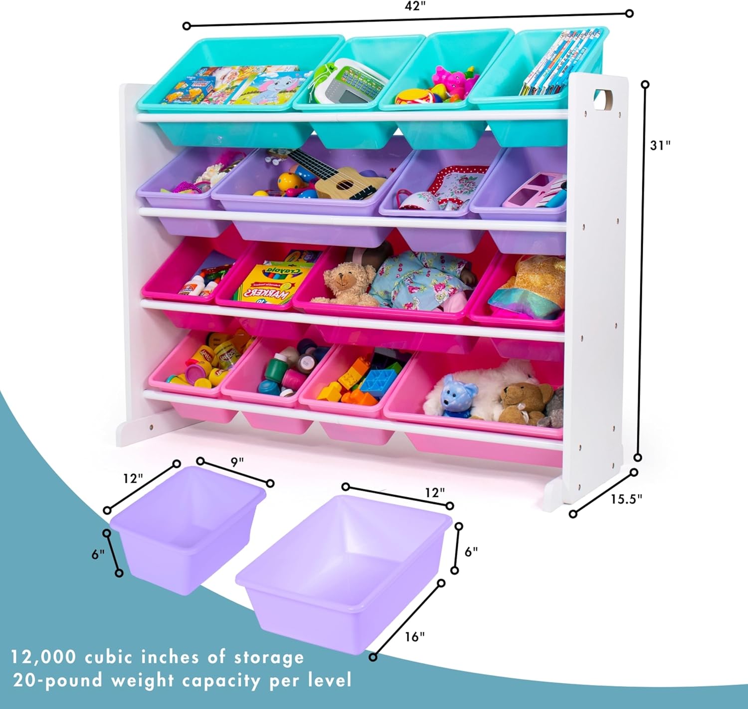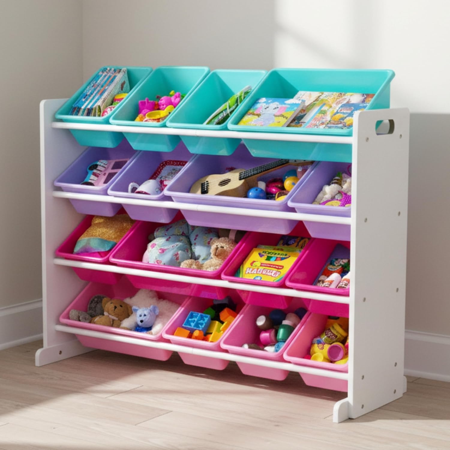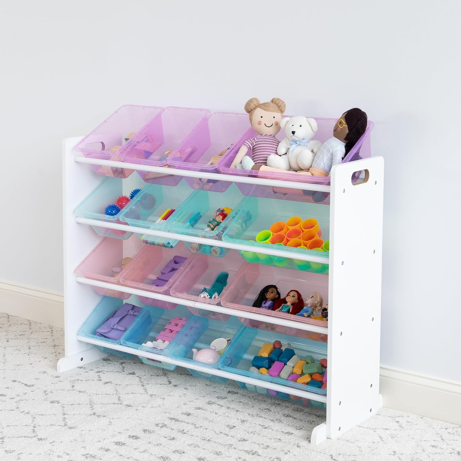 Humble Crew Supersized Toy Storage Organizer with 16 Removable Bins, White/Blue/Pink/Purple – Large Toy Storage for Toddlers Ideal for Kids' Rooms, Playrooms, and Nurseries - Modern Toy Bins for Kids